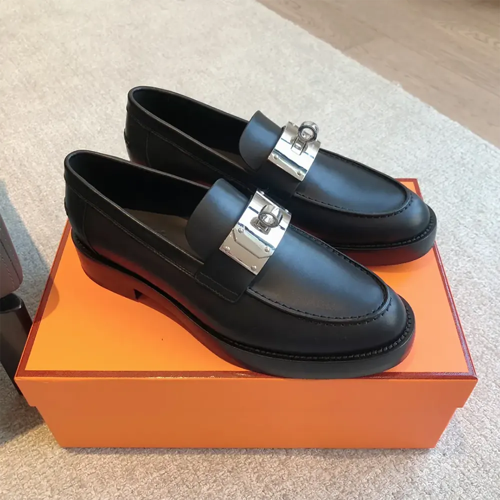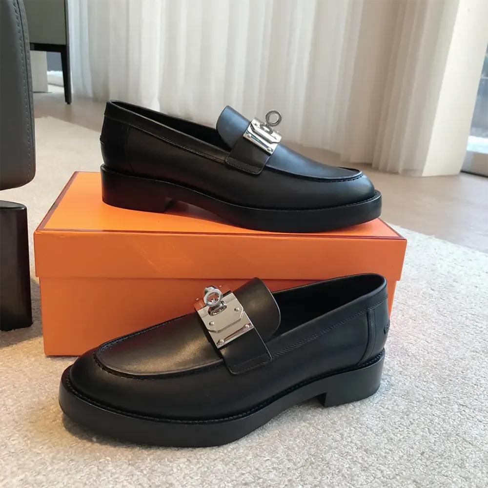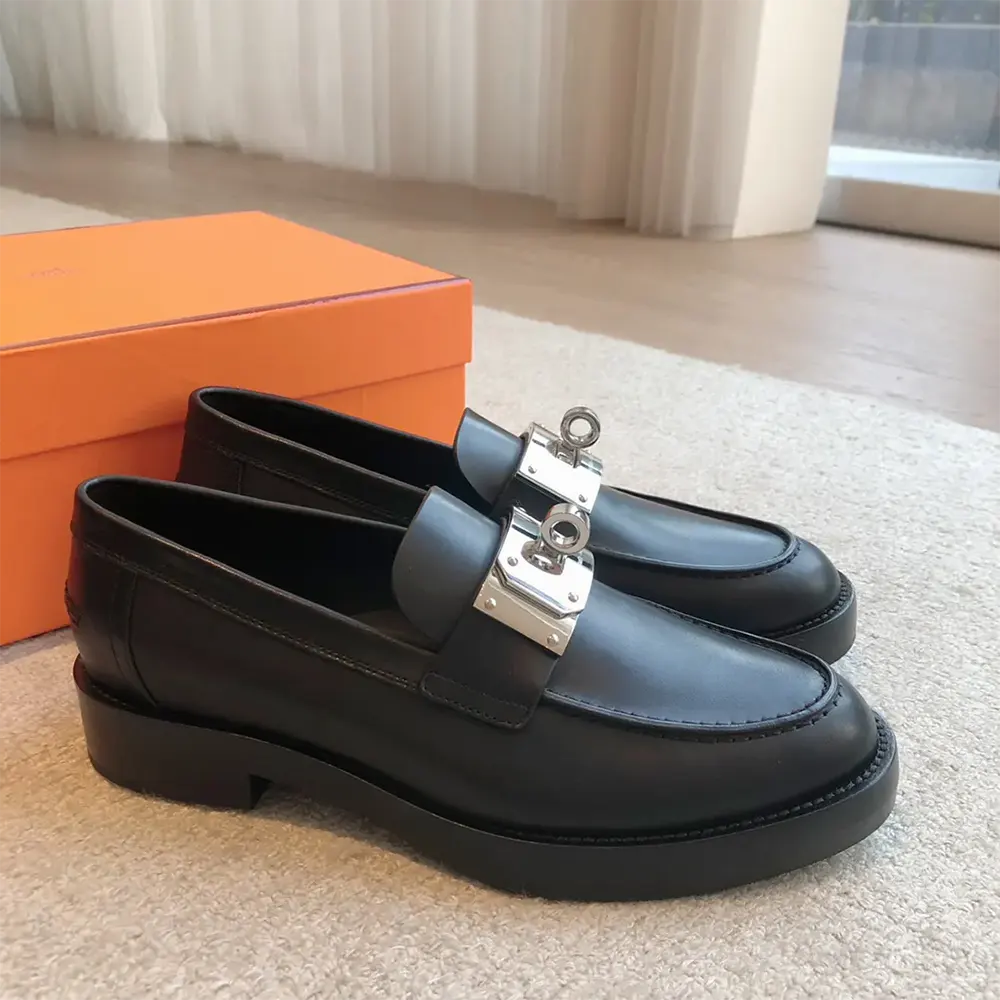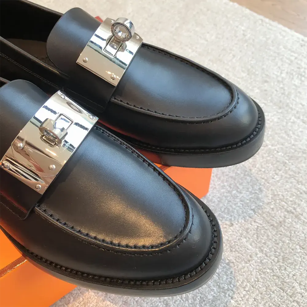 • Mocassin en cuir de veau avec boucle Kelly oversize emblématique plaquée palladium.